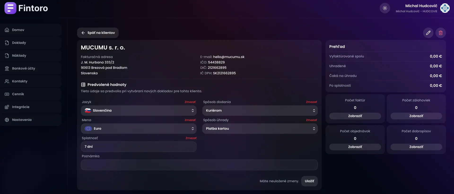 Od tohto momentu sa všetky nové faktúry a ostatné doklady budú pre konkrétneho klienta predvypĺňat s nastavenou splatnosťou a dátumom splatnosti. Automaticky tak, aby ste šetrili maximum času a fakturovali čo najefektívnejšie.