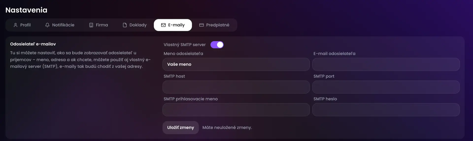 Keď už chcete svoje podnikanie a fakturáciu posunúť na vyššiu úroveň, môžete si pridať vlastný SMTP.