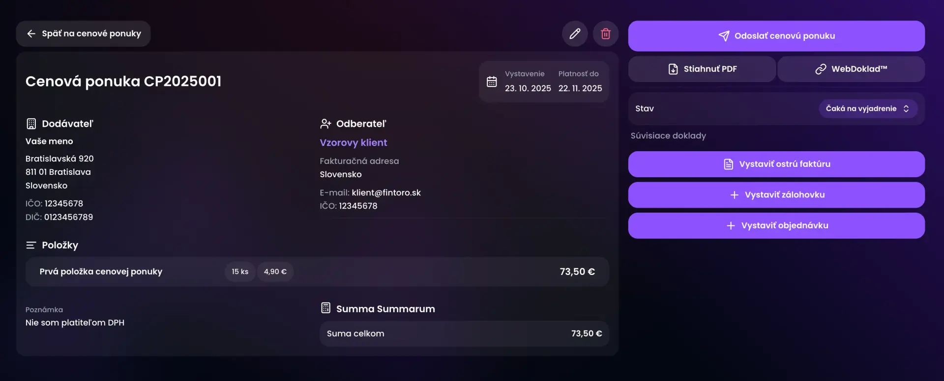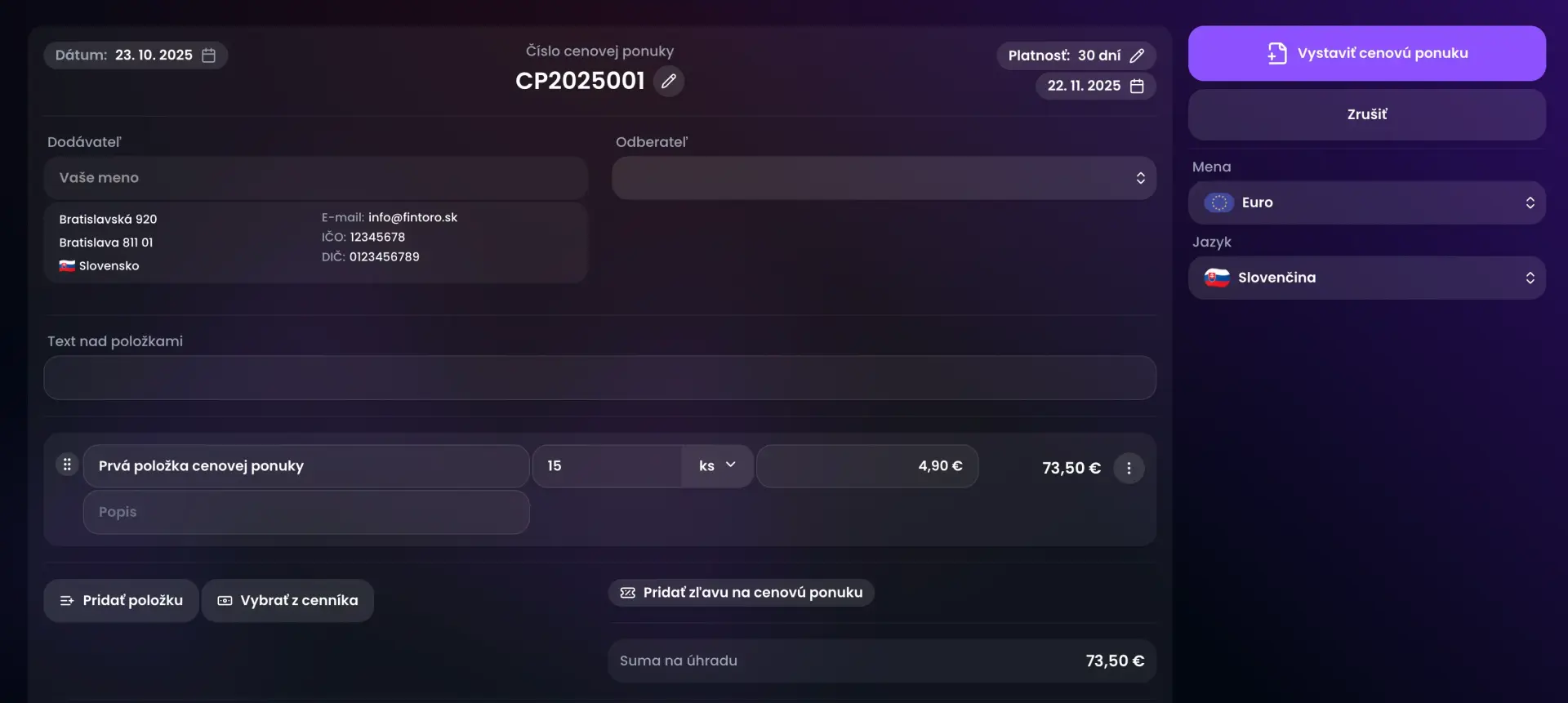 Ako vystaviť cenovú ponuku cez Fintoro - návod