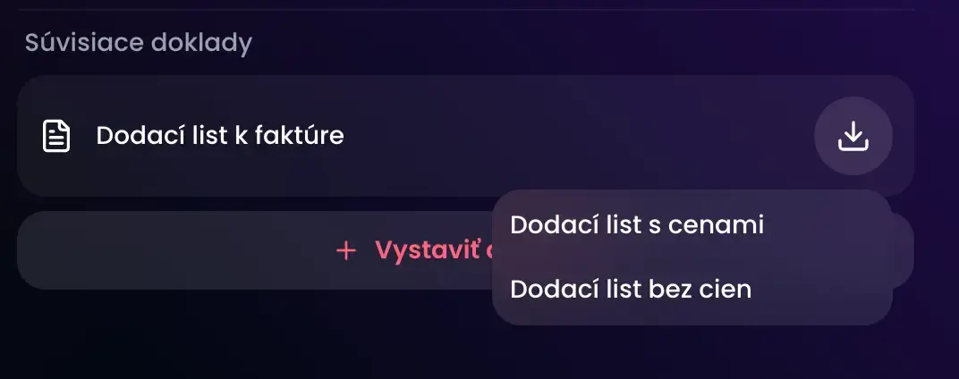 5. Z možností stiahnutia si vyberte dodací list s cenami alebo bez cien