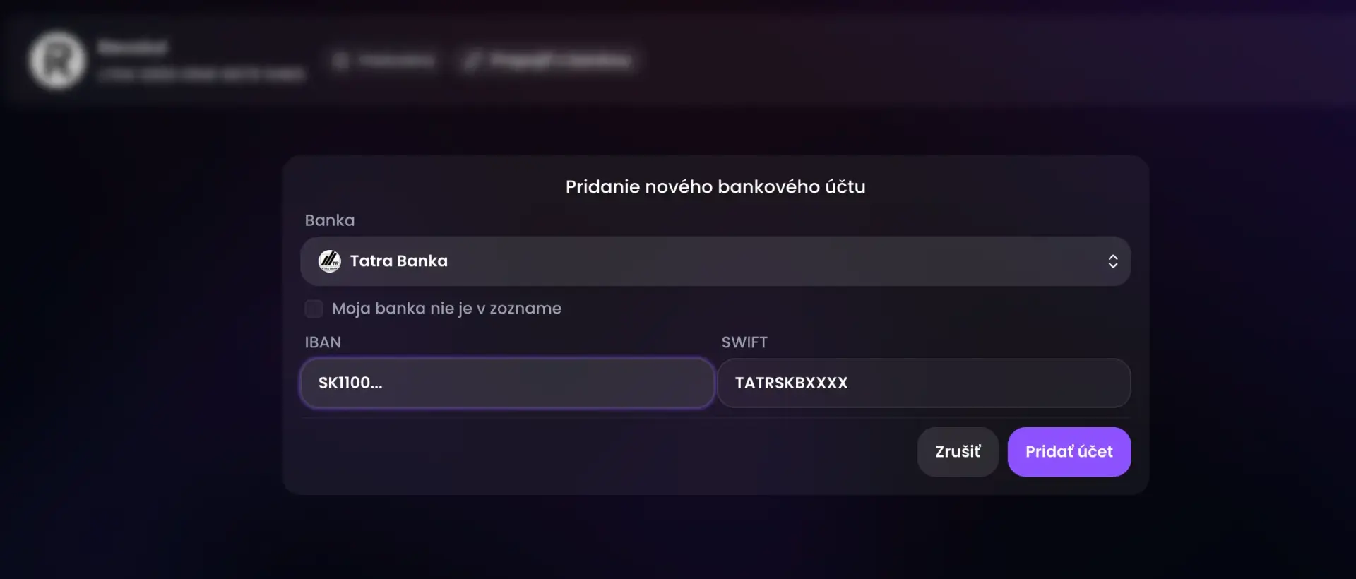 Rovnako nezabudnite vyplniť svoj IBAN na podstránke “Bankové účty”. Ak účet nemáte pridaný, kliknite na “Pridať bankový účet”. Stačí vybrať vašu banku zo zoznamu a vyplniť číslo IBAN. Ak vaša banka nie je v zozname, stačí zakliknúť políčko a okrem IBANu zadať kód SWIFT.