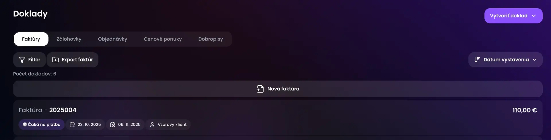 3. V hlavnom menu prejdite na "Doklady" a rozkliknite si faktúru, pre ktorú chcete vytvoriť dodací list