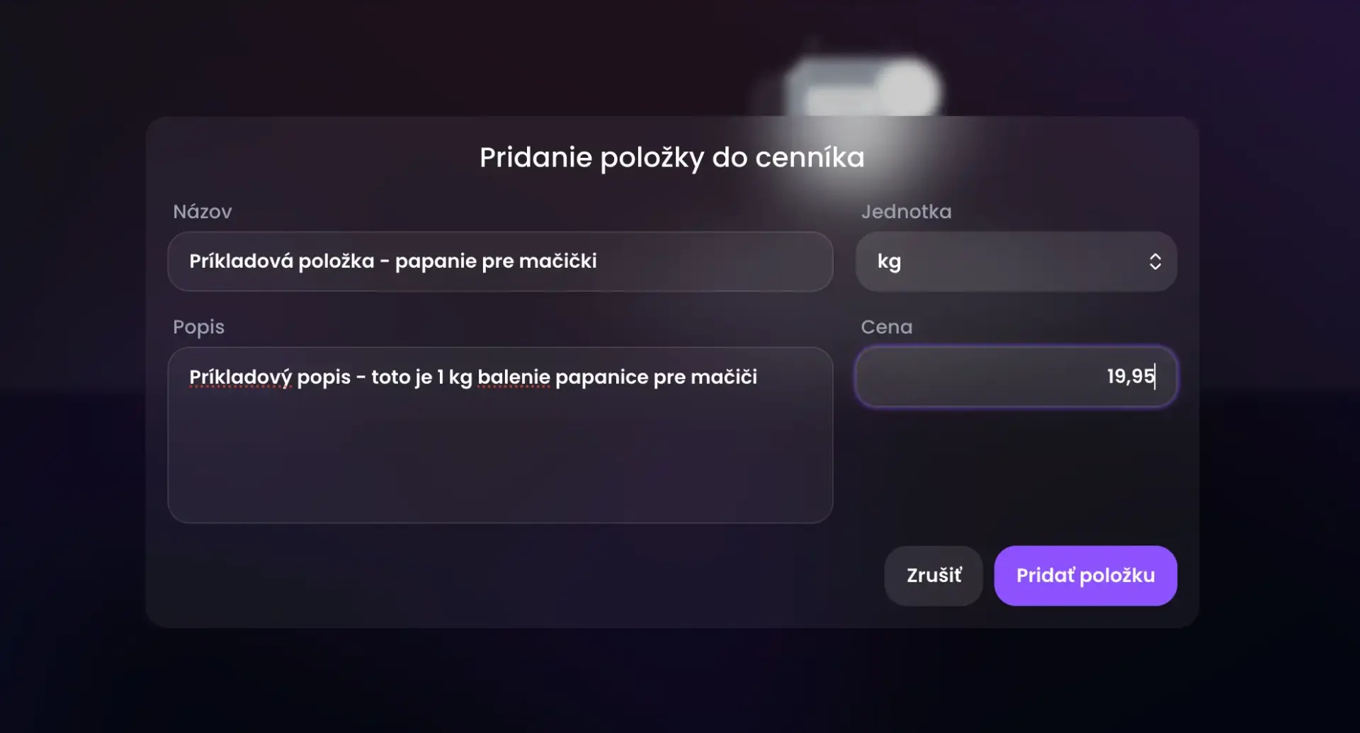 Ako cenník funguje a ako pridať položky
