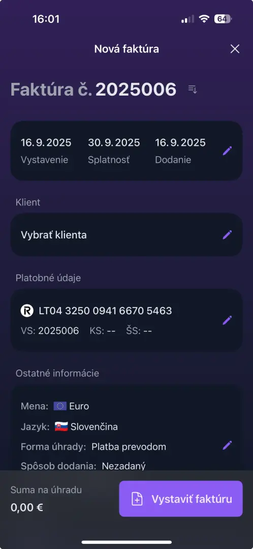 Mobilná fakturačná aplikácia umožňuje vytvárať, odosielať a spravovať faktúry priamo z telefónu, kedykoľvek a kdekoľvek. Nemusíte byť v kancelárii ani pri počítači. Fakturujete alebo ukladáte nové údaje priamo na stretnutí, v MHD, v kaviarni alebo na bežiacom páse.